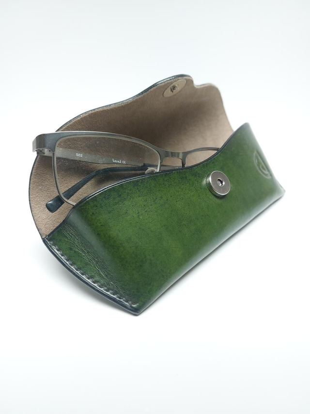 Étui à lunettes en cuir tannage végétal doublé d'un tissu style alcantara. Entièrement réalisé à la main.