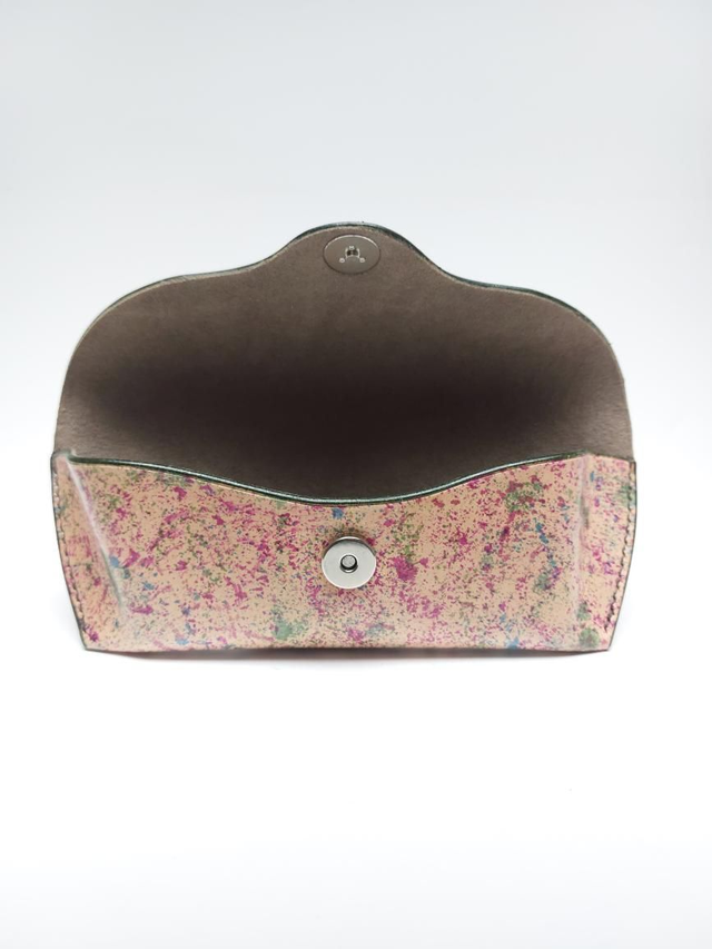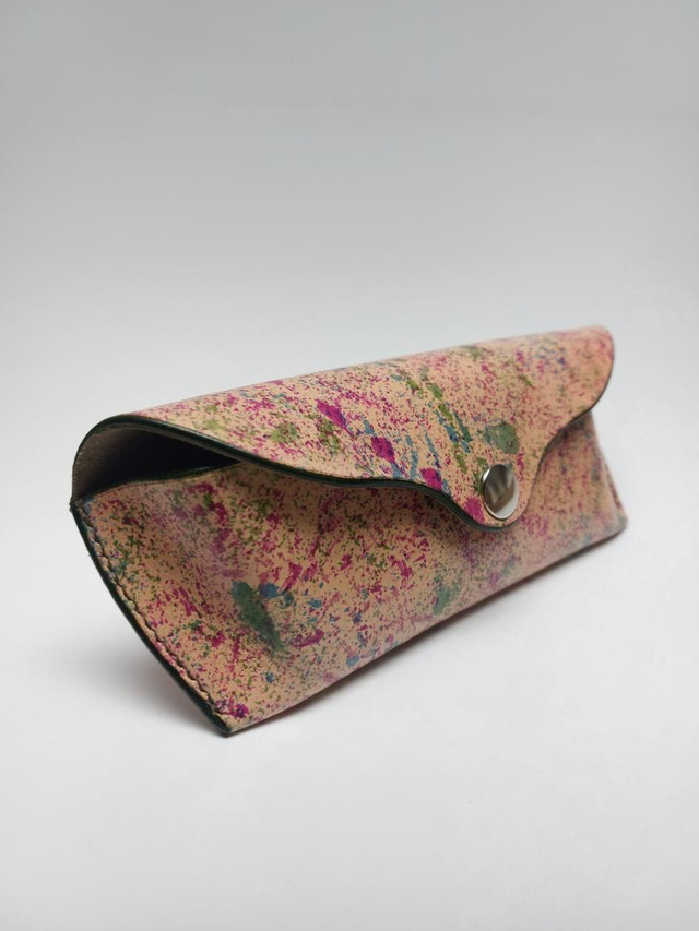 Étui à lunettes en cuir tannage végétal doublé d'un tissu style alcantara. Entièrement réalisé à la main.