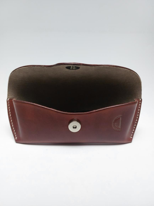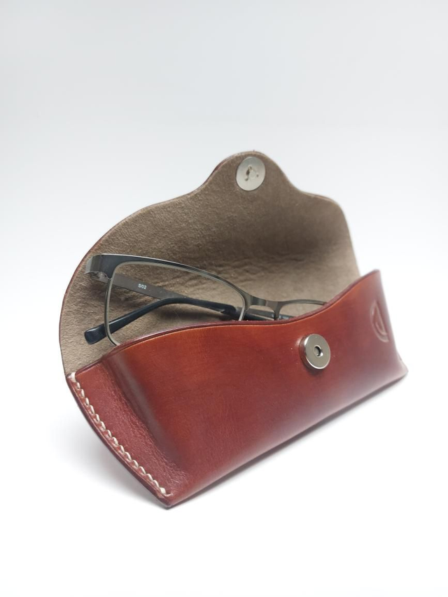 Étui à lunettes en cuir tannage végétal doublé d'un tissu style alcantara. Entièrement réalisé à la main.