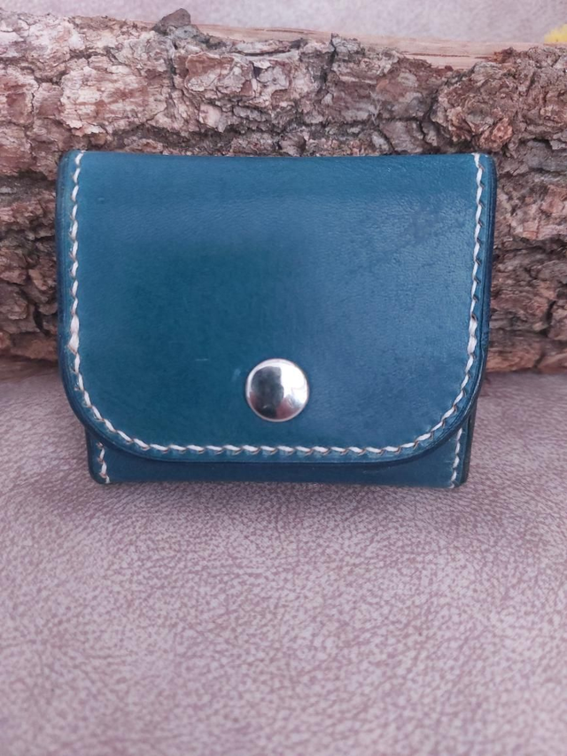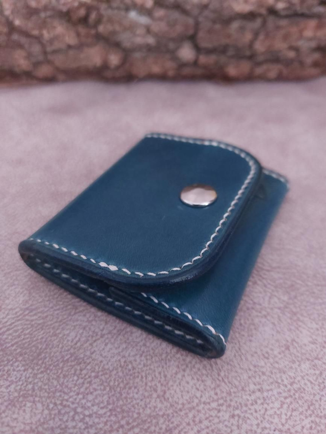 Petit porte-monnaie en cuir tannage végétal réalisé entièrement à la main.