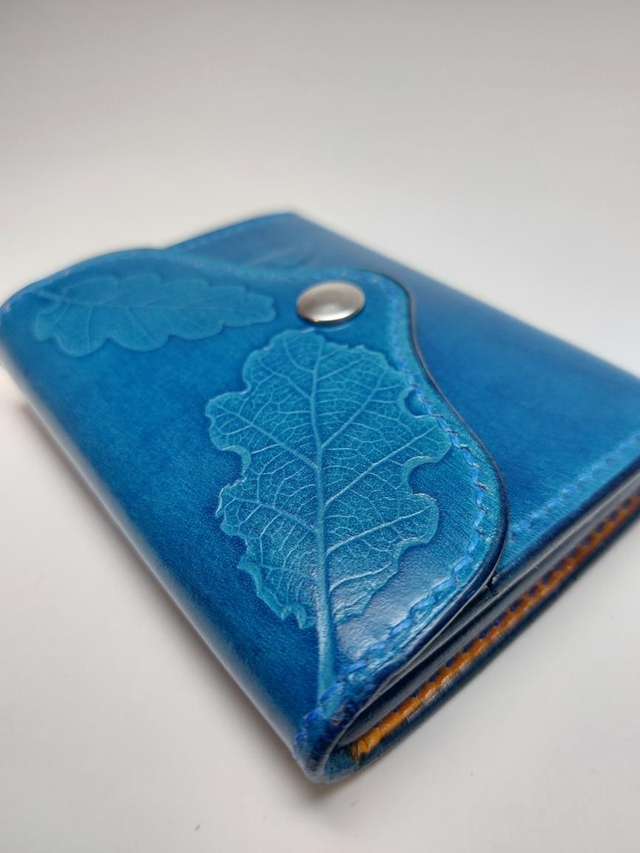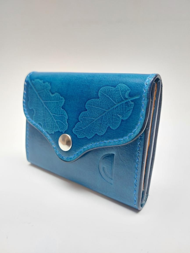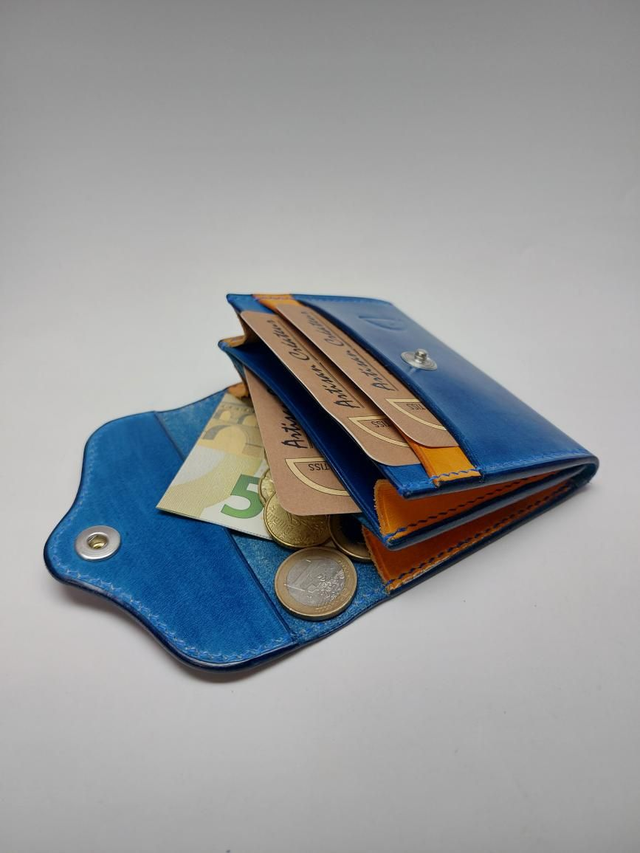 Porte monnaie avec emplacements cartes. Entièrement réalisé à la main en cuir tannage végétal.
