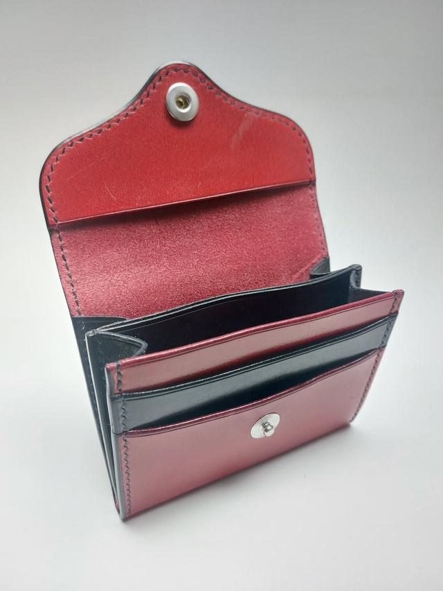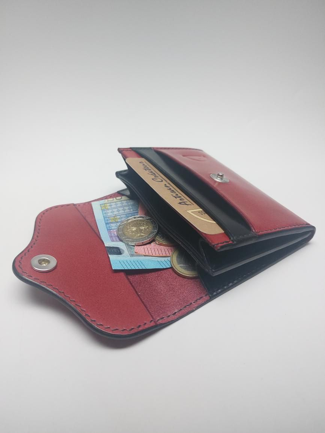 Porte monnaie avec 2 emplacements cartes et poche pour monnaie. Entièrement réalisé à la main en cuir tannage végétal.