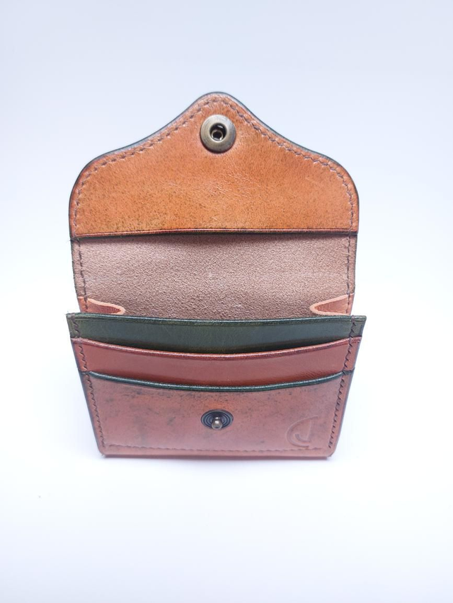 Porte monnaie avec 2 emplacements cartes et une poche monnaie. Entièrement réalisé à la main en cuir tannage végétal.