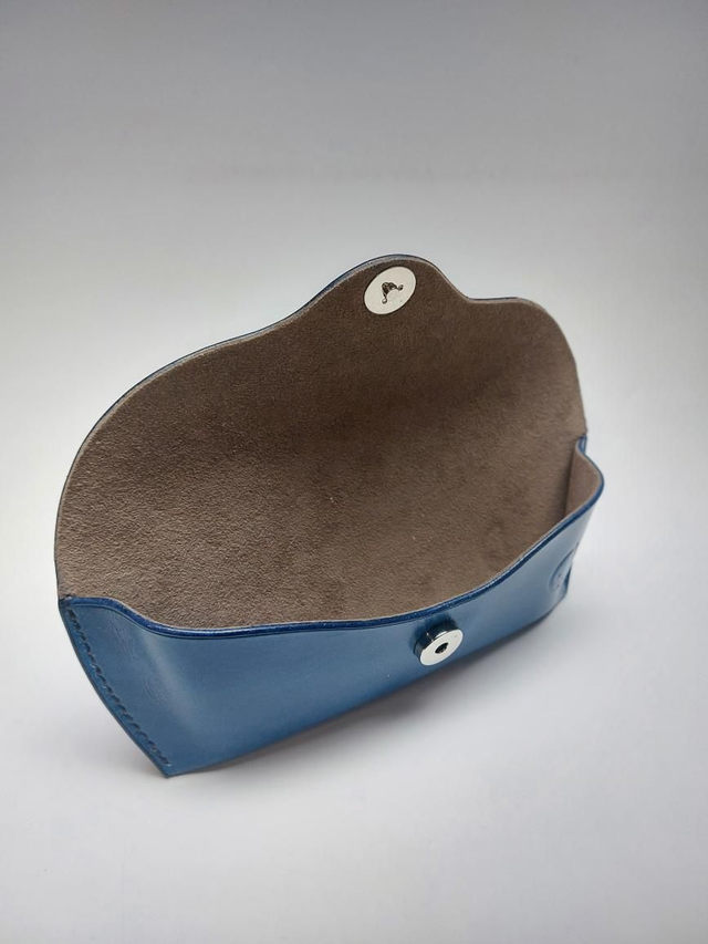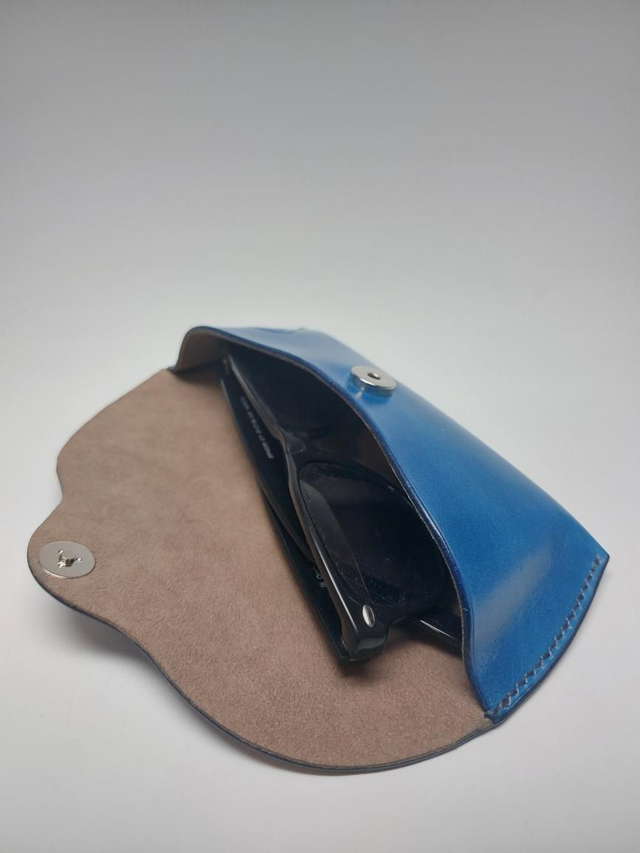 Étui à lunettes en cuir tannage végétal doublé d'un tissu style alcantara. Entièrement réalisé à la main.